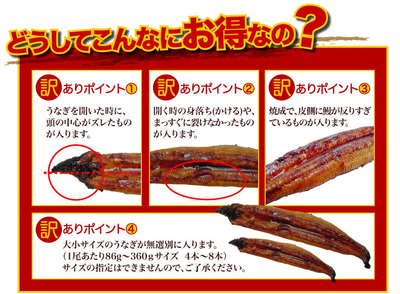 鰻を開く時に、頭の中心がズレたり、まっすぐに割けなかったりしただけで、美味しさには変わりありません。